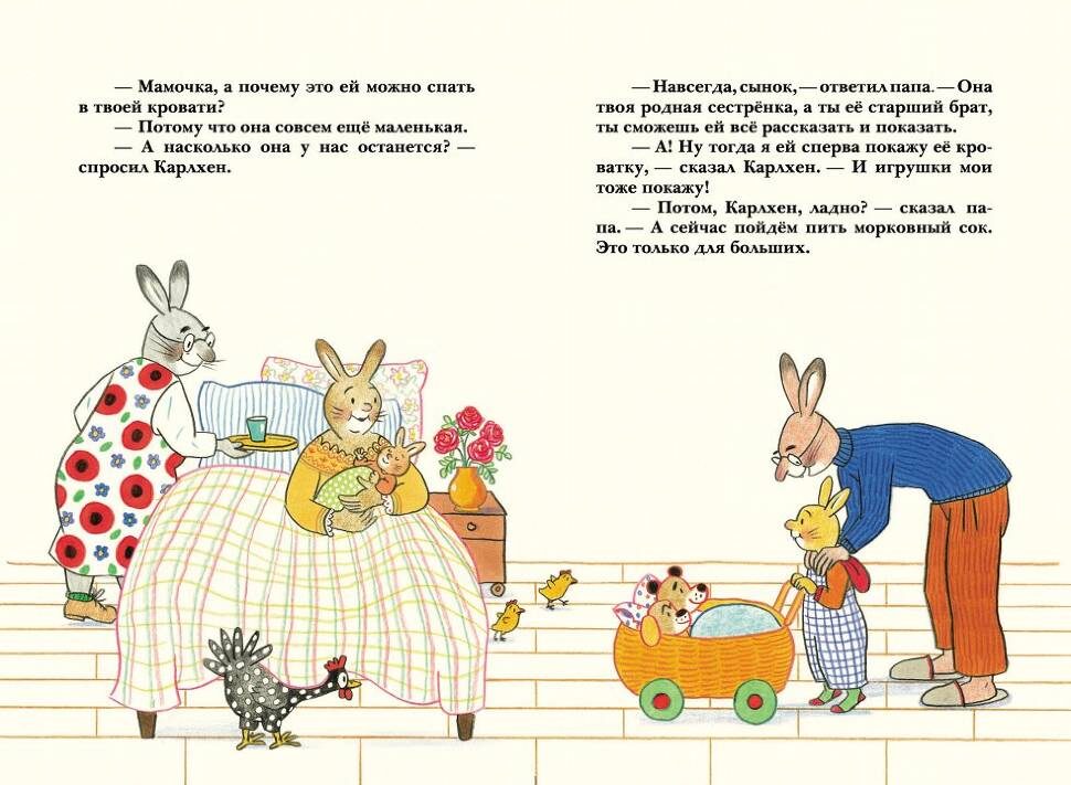 Двадцать девять коротеньких рассказиков известной немецкой художницы и писателя Ротраут Сюзанны Бернер посвящены одному периоду детства малыша: от двух до пяти лет. Зайчик Карлхен осознает свое место в этом мире, учится лучше понимать себя и окружающих, заводит первых друзей и разрешает первые конфликты. В занимательной и неутомительной художественной форме автор подсказывает детям и родителям выход из затруднительных ситуаций, которые возникают каждый день.