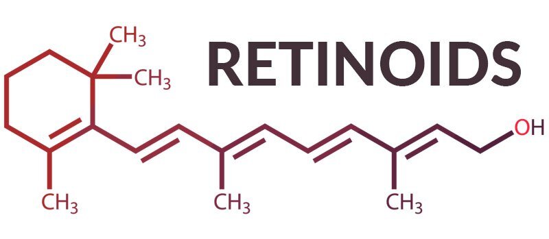 Ретиноиды — это структурные аналоги витамина А (ретинола), который играет важную роль в разных физиологических процессах и в дифференциации тканей (особенно эпителиальных). Ретиноиды влияют на развитие и деление эпителиальных клеток, стимулируют создание новых кровеносных сосудов и выработку соединительно-тканных волокон дермы. Снижают вероятность рака кожи (некоторые формы даже используются в онкологии для лечения отдельных видов рака), уменьшают пигментацию (постакне, пигментные пятна) и показывают антиоксидантную активность. Ретиноиды используется в качестве активного компонента профессиональной косметики по уходу за кожей. Ретиноиды истончают роговой слой, но при этом уплотняют эпидермис и расположенную под ним дерму. В конечном результате, кожа выглядит плотнее и моложе. Продукция с содержанием ретиноидов стимулирует выработку коллагена и способствует разглаживанию морщин (как мелких, так и более глубоких). Ретиноиды чувствительны к солнечному свету, поэтому наносить препара