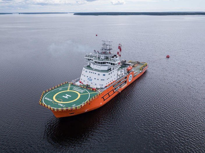 — Значительная часть оборудования, установленного на ледоколе, — российского производства. Например, центр судостроения “Звездочка” в Северодвинске оснастил судно самым современным носовым подруливающим устройством. Также на ледоколе установлено отечественное навигационное оборудование, ходовой мостик, генераторы — важнейшие элементы, которые обеспечивают работу судна.