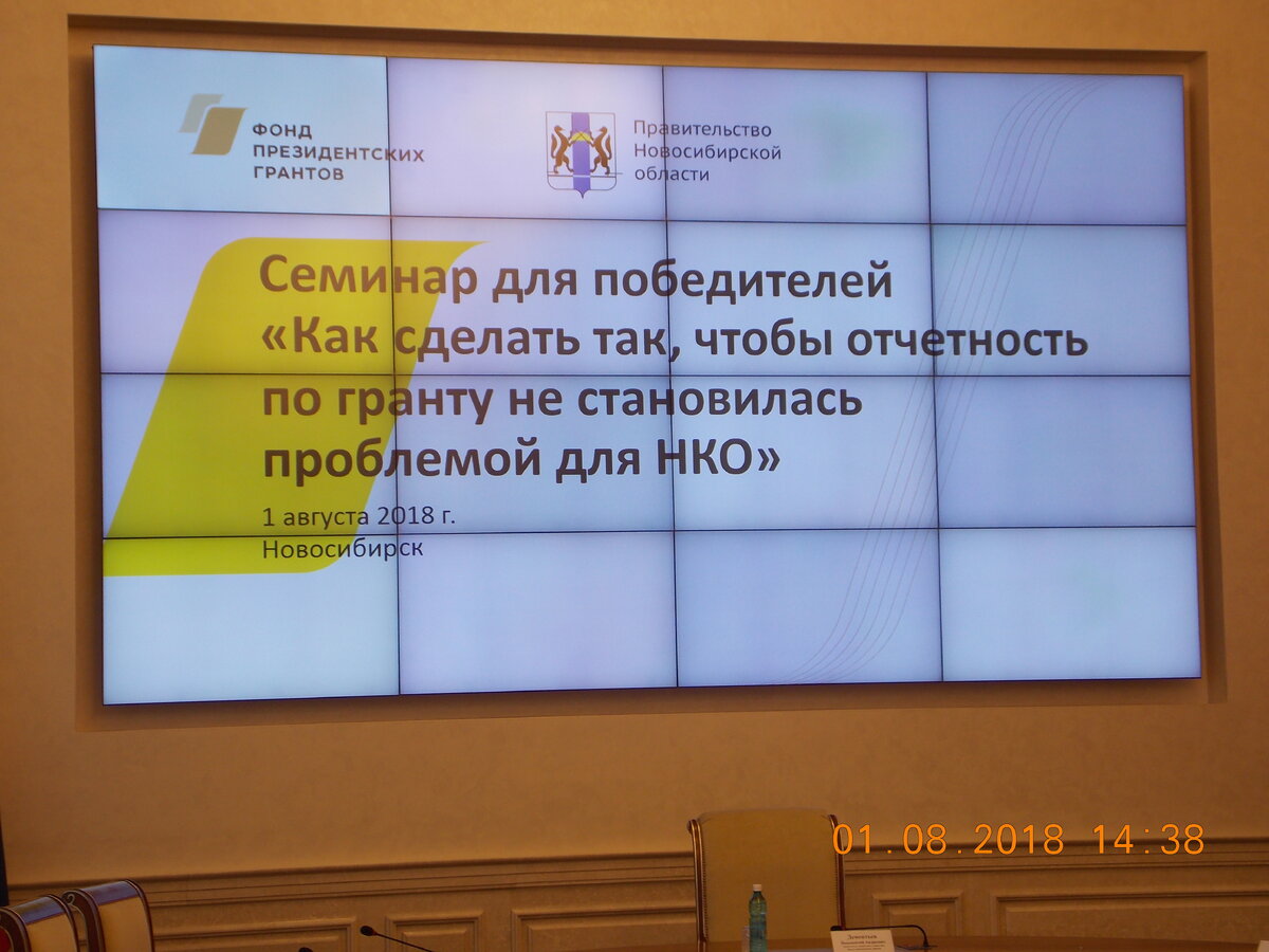 1 августа 2018 года в городе Новосибирске Фонд президентских грантов провел серию мероприятий для некоммерческих организаций Новосибирской области: 1. семинар для соискателей грантов Президента Российской Федерации на развитие гражданского общества; 2. семинар для победителей первого конкурса фонда 2018 года, посвящённый вопросам грантовой отчётности. Семинар для соискателей грантовой поддержки «Гранты Президента Российской Федерации на развитие гражданского общества» провел генеральный директор Фонда президентских грантов Илья Чукалин. Мероприятие было посвящено вопросам грантовой поддержки проектов некоммерческих организаций в 2018 году. Генеральный директор фонда рассказал об условиях конкурсов, о системе экспертизы проектов и о наиболее распространенных ошибках, которые допускают некоммерческие организации в своих заявках на участие в конкурсах. Семинар для победителей первого конкурса президентских грантов 2018 года Новосибирской области «Как сделать так, чтобы отчетность по