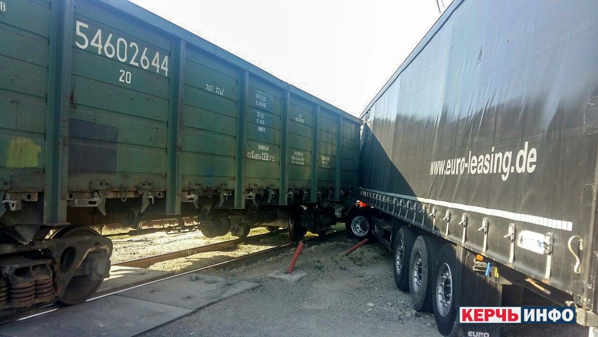 На Керченской паромной переправе поезд снес грузовик (ВИДЕО)