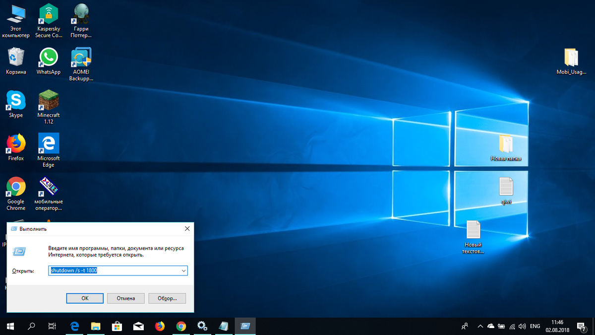 Пишете : "shutdown /s -t ..... (Вместо точек пишем нужное кол-во секунд)