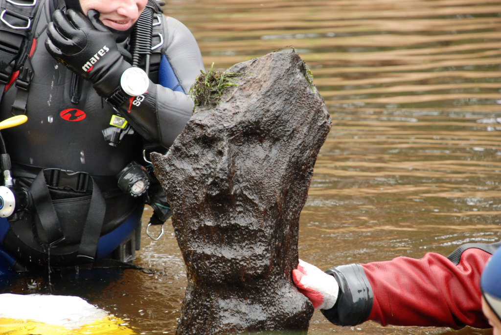 Уникальную находку мирового масштаба подняли со дна реки Дрисса дайверы совместно с археологами. Специалисты считают, что находке тысячи лет и аналогов в древнем словянском мире нет. Еще 27 лет назад, два любителя охотника переправляясь через реку, использовали торчащее бревно в воде как опору, чтобы справится с течением. Один из охотников взглянув за что держится – обомлел! Из воды на него смотрело лицо. Но продолжение эта история получила только в наше время. Об идоле узнал человек занимающийся подводной охотой и увлекающийся археологией. Решение было принято, нужно поднять идола из воды. Сформированная группа из профессиональных водолазов поднимала идола на поверхность более часа, и понятно, весит он под 150 килограмм. По словам специалистов, данная уникальная находка — это артефакт мирового масштаба. И оказаться на дне реки могла во время христианства на Руси, когда идолов сжигали и бросали в реку. На данный момент находку отправили на консервацию и реставрацию.