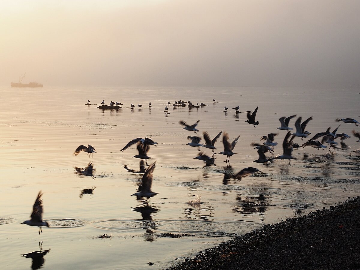 Не всегда, когда намеченные планы меняются по независящим от тебя обстоятельствам, это плохо. Иногда это становится началом удивительных историй... Уже будучи на Сахалине, сроки нашей поездки на остров Монерон несколько раз сдвигались. Ну нельзя же сидеть и просто ждать, тем более когда ты уже прилетел на Сахалин в августе, когда уже началась путина, и горбуша подошла к устьям рек. Нам помогли договориться, и мы всей командой отправились в рыбацкий стан, в залив Мордвинова. Рыбаки, сети, горбуша и все что вокруг этого происходит. Это было действительно интересно, так как вслед за лососем идут все остальные – тюлени, акулы, птицы и много кто еще. С другой стороны рыбаки и много километров сетей. Именно это и должно было бы стать основной частью нашего пребывания там, но не стало… С километр от берега, рядом становая сеть. И первые же несколько секунд в воде изменили наши планы. Но вместо ожидаемой рыбы в глаза бросаются крошечные существа. 2,3,4 сантиметра максимум. Но их много