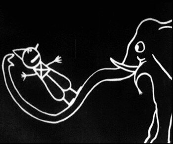 В 1907 году американская фирма «Vitagraph» («Вайтаграф) привезла в Европу новый фильм режиссера Джеймса Стюарта Блэктона «Гостиница с приведениями». Блэктон уже был известен по картине 1900 года «Очарованный рисунок», в которой впервые была использована комбинированная анимация. Также Джеймс Блэктон совместно с Альбертом Э. Смитом в 1898 году сняли фильм «Цирк лилипутов», который можно назвать первым мультипликационным фильмом лишь потому, что в качестве актеров выступали деревянные куклы. Однако примером полноценной мультипликации он, конечно, не являлся.