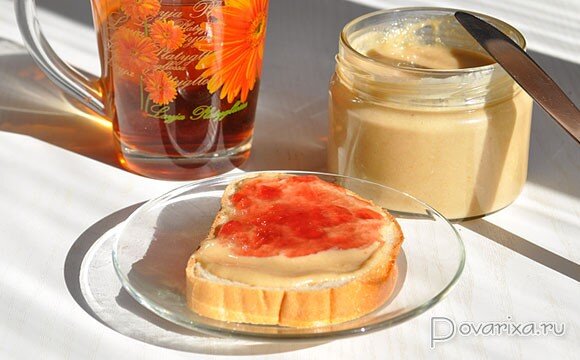 Потому, что мы делаем ее сами, она густая и вполне натуральная: только орехи, мед, растительное масло и немножко соли. Не проще ли купить ее? Наверное, проще, но цена от 100 рублей за 100 г пасты - не каждому по карману. А когда мы готовим ее сами, то она обходится нам по цене сырых орехов, вполне доступной. Для первого опыта берем 400 г орехов, 2 ч. ложки меда, 0,5 ч. ложки крупной соли, 50-60 мл рафинированного масла. Орехи слегка обжариваем в духовке или на сковороде. Огонь - средний, обжариваем не спеша, часто перемешивая, они должны подрумяниться и хорошо подсушиться, легко раскалываться. Можно жарить неочищенный арахис, но затем обязательно очистить его. Начинаем измельчать орехи в блендере, но делаем это небольшими порциями. В каждую порцию добавляем немного меда и соли. Примерно через минуту работы на высокой скорости блендер измельчает порцию. Теперь пора потихоньку подливать растительное масло. Постепенно в блендере паста собирается плотным комом. Ножам блендера тяжело в