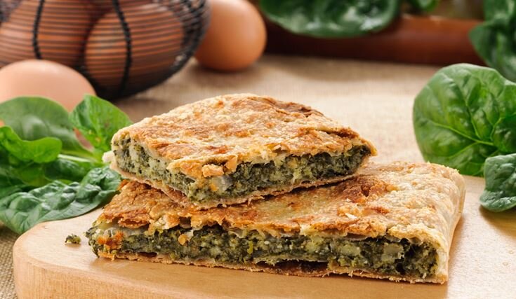 Ингредиенты Способ приготовления В емкости смешать кефир, сахар, масло, соль и немного подогреть. Далее просеять муку и смешать с дрожжами. Соединить подогретый кефир и муку с дрожжами и замесить тесто. Оставить тесто подниматься в теплом помещении на 30 минут. Замороженный шпинат бросить в кипящую воду и варить пару минут. Затем шпинат откинуть на сито, чтобы стекла жидкость, а потом немного отжать. Лук нарезать кубиками и жарить на сковороде до прозрачности. Далее добавить шпинат, измельченные оливки, соль по вкусу, мускатный орех и перемешать. Тушить под крышкой 3 минуты. Затем можно добавить любой сыр (по желанию). Тесто делим на 2 части (одна часть - верх, вторая - дно и края пирога). Раскатать основу и выложить в форму. На получившуюся основу выложить начинку и закрыть второй раскатанной частью. Верх пирога немного прорезать или потыкать вилкой, чтобы выходила влага. Выпекаем пирог в заранее разогретой до 180 градусов духовке 35-40 минут. Пирог со шпинатом подается в холодном