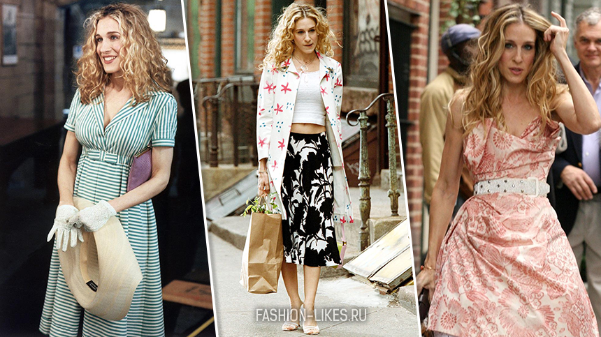 Все девушки вдохновляются разными звездами, книгами, музыкой и кинематографом. Но абсолютна каждая модница нашла собственный источник для новых стильных идей в легендарном сериале «Секс в большом городе». Кэрри Брэдшоу стала настоящей звездой, образы которой остаются актуальными и чудесными сегодня. Разбавляем гардероб Любимая всеми журналистка по имени Кэрри никогда не стеснялась тратить время на подбор наряда. Просиживая в гардеробе часами и тратив время на увлекательный шоппинг, девушка задала темп модным обновлениям. Нам же стоит рассмотреть все детали её шикарного внешнего вида и пользоваться знаниями на практике. Цветочные мотивы. Брэдшоу мастерски показывает, что женщины – это самые прекрасные цветы на этой планете. Чтобы подчеркнуть красоту, она часто появлялась на улице в легких воздушных платьях или блузах с флористическими элементами. Подобные принты выделяют нежность и утонченность, что свойственна истинным леди. Эту тенденцию каждый год подхватывают известные модельеры и в