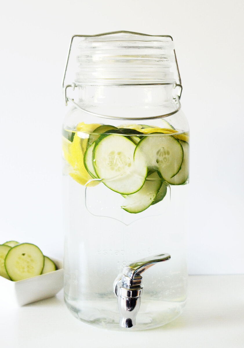 Это должен быть, безусловно, самый простой рецепт на планете, но мне на самом деле не нравится вкус воды и что-то нужно с этим делать. Вы скажете, что вода на вкус не похожа ни на что, но именно поэтому мне и не нравится. Я пью ее, потому что должна. Решение моей проблемы - огуречная лимонная вода. Это вода со спа-аппеляцией. Каждый глоток говорит "Я тебя люблю" твоему пищеварению и здоровью. Огуречная лимонная вода не только вкусная, но и отлично подходит для детоксикации организма. Вот преимущества питьевой огуречной лимонной воды: Огурцы - это овощ с низким содержанием калорий и высоким содержанием клетчатки. Они богаты калием и магнием (который отлично подходит для мышц) и являются отличным источником для витамина B. Они являются антиоксодантом и идеально подходят для тех, кто ищет противовоспалительную диету. Да они просто вкусные! Лимоны помогают сохранить кожу сияющей, помогают в переваривании (всегда здорово пить лимонную воду первым делом с утра), а также наполнены витам