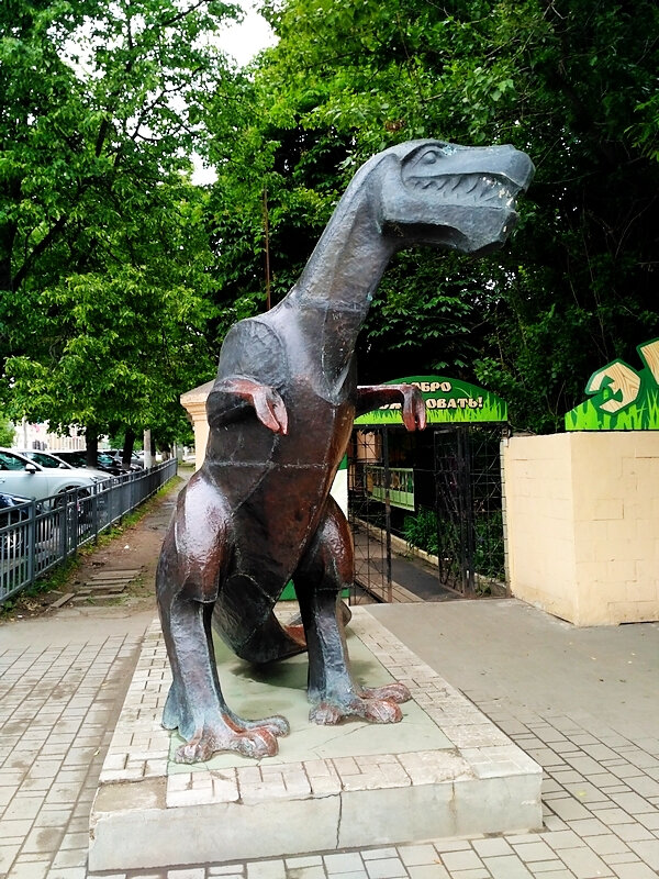 Начало Одна из наиболее популярных достопримечательностей Тулы — Тульский экзотариум, единственный в России парк рептилий и амфибий, существующий с 1987 года. Здесь собрана крупнейшая в мире коллекция змей — около 500 видов. Правда, посмотреть их всех сразу не получится. Более 70 видов представителей животного мира можно одновременно увидеть в четырех залах постоянно действующей экспозиции Тульского экзотариума, хотя это только десятая часть всей коллекции. Каждый месяц меняется тематика экспозиций и животные. У входа в экзотариум посетителей встречает статуя тираннозавра, шуточно прозванная жителями Тулы «Памятник теще». В дни праздничных мероприятий тираннозавра наряжают в оригинальные костюмы, например первоклашкой на 1 сентября или в кимоно с черным поясом в честь визита в Тулу президента Путина. А в самом экзотариуме нас встречает скромный аквариум с рыбками… …и всяческая пакость, типа улиток, тараканов, палочников и паука. Всяких рептилий и амфибий действительно много по сравнени