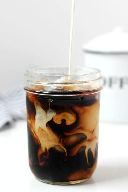 2. Процедите через фильтр для кофе, разбавьте водой по вкусу и добавьте молоко, если необходимо.
