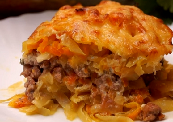 Рецепт запеканки из капусты с фаршем. Обязательно приготовьте по этому рецепту и вы точно не раз еще повторите. Такая запеканочка всегда очень радует. Она получается сочная, ароматная и сытная. Попробуйте! Первым делом нарежем лук и натрем морковь на крупной терке. Нашинкуем капусту соломкой. В глубокую сковороду наливаем растительное масло. Выкладываем половину нарезанного лука и через минутку добавляем морковь. Тушим вместе примерно минуты 2. После чего выкладываем капусту. Если капуста суховатая наливаем немного воды. Далее все хорошо размешиваем и тушим все вместе до готовности. Затем насыпаем соль и снова перемешиваем.