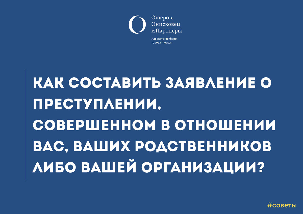 Человеческая жизнь непредсказуема. Каждый день житель мегаполиса сталкивается с огромным количеством ситуаций. Однажды одна из них может привести не к самым приятным последствиям: как указывает Прокуратура города Москвы, в столице за 2017 год было зарегистрировано 140 134 преступления. ШАГ 1: Определите противоправное деяние В первую очередь, вам необходимо оставить эмоции за пределами листа, на котором будет описано преступление, совершённое в отношении Вас, Ваших родственников либо Вашей организации. Определитесь с тем, что именно произошло, т.е. укажите на само противоправное влияние - это может быть, например, причинение вреда здоровью, хищение или уничтожение имущества и т.д. ШАГ 2: Определите подследственность В какое именно территориальное подразделение правоохранительного органа следует подать заявление – будет зависеть от места совершения преступления. ШАГ 3: Напишите заявление о преступлении в соответствии с принятой структурой Для того, чтобы не столкнуться с проблемами с