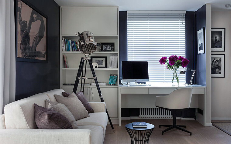 Для небольшого кабинета всегда найдется место в квартире. Его можно расположить в гостиной, спальне и на застекленном балконе. Главное, чтобы там было все необходимое: письменный стол, удобное кресло, а также книжный стеллаж и правильное освещение.