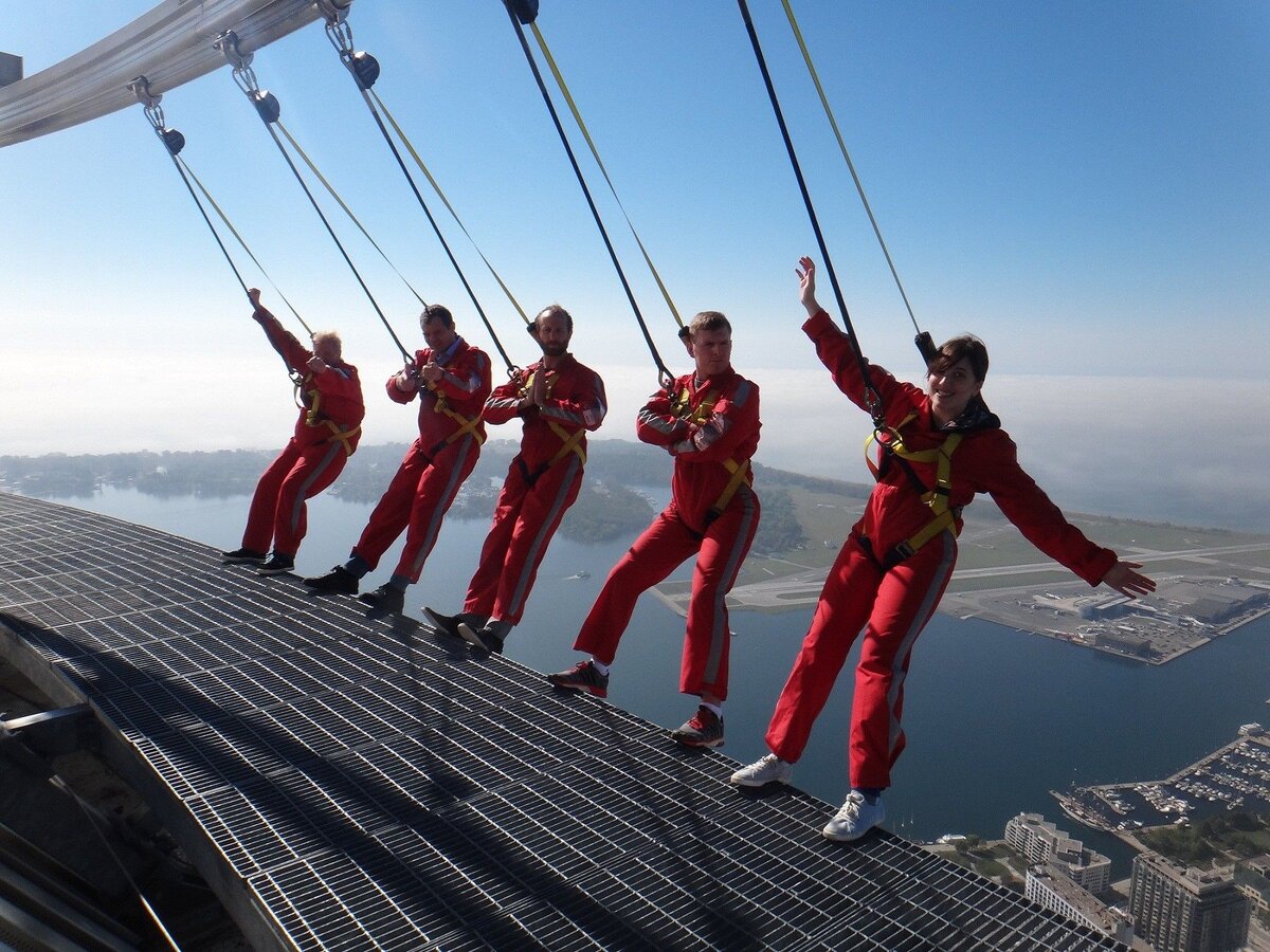 Прогулка по краю Канадской телебашни взбодрит вас. Расстояние каких-то "356 км" - извините, метров, от земли. Заряд получила в полной мере только девушка (судя по фото). Китайская прозрачная смотровая дорожка. Всего-то 1400 высоты и полтора километра в бесконечном круге. Придерживайся за скалы и доберёшься до выхода. Французский квадрат на высоте 3777 м. Под тобой впечатляющего вида ледники. Американская катапульта - встряхнёт так, что вы вспомните знаменитого барона Мюнхгаузена - когда тот летал на ядре. Ещё один Американский допинг, пожалуйста. Всего 300 метров от любимой земли. Питерская ракета прокатит (воздушным способом) по красивому городу Петра и не оставит без впечатлений. Удачи и адреналинчика!