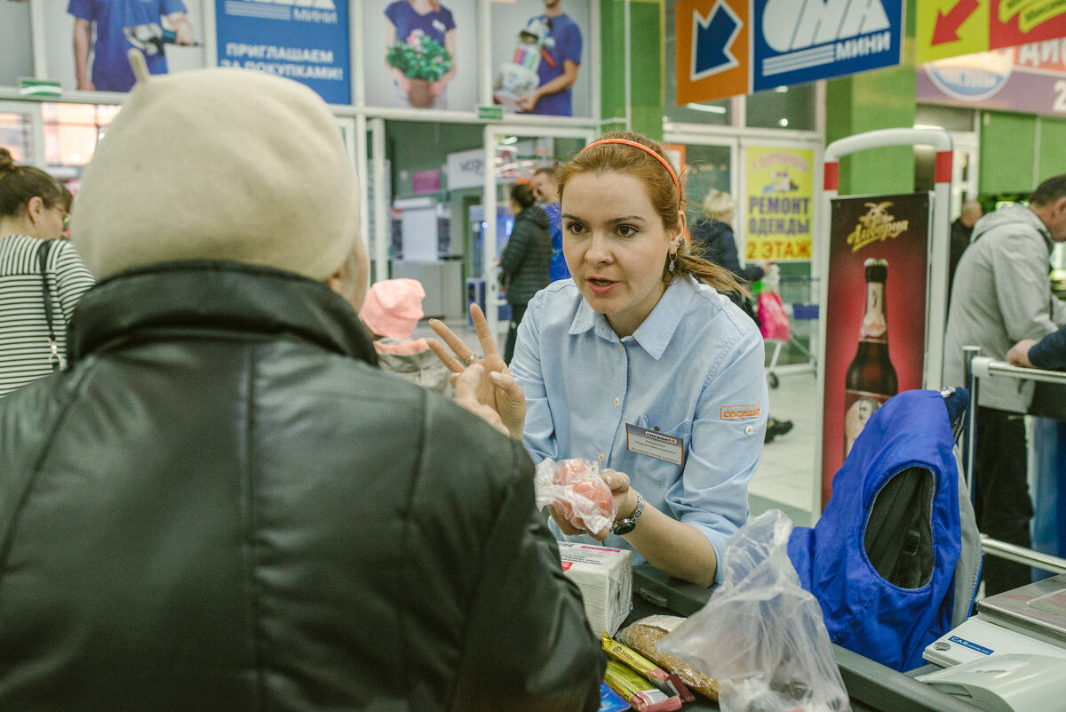Слабослышащие кассиры работают в 13 магазинах сети. Ребята очень стараются. Пытаются уловить каждое слово покупателей, читают их по мимике и жестам, изо дня в день доказывая, в первую очередь, — себе (а порой и нам), что все барьеры мы придумали в своей голове.