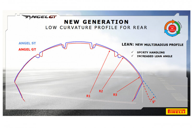 Интересный момент, что в поперечном сечении профиль современной мотошины имеет такой хитрый изгиб, что при прямолинейном движении с дорогой контактирует минимальное количество резины, дабы обеспечить минимальное сопротивление качению, а в повороте, когда даешь угла, шина соприкасается с асфальтом большей площадью.