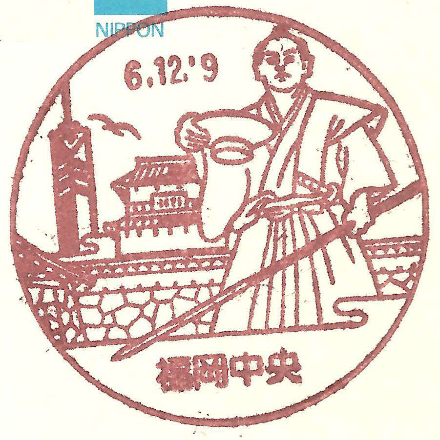 На этот раз возьмем ПК погашенную 9 декабря 1994 (6) года в почтовом отделении г. Фукуоки одноименной префектуры - Fukuoka chuo.
