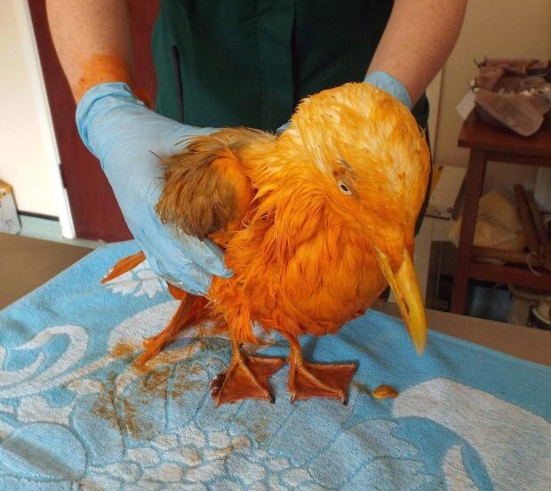 Они доставили её в ветеринарный госпиталь «Vale Wildlife Hospital and Rehabilitation Centre», где чайку отмыли и оставили на реабилитацию.