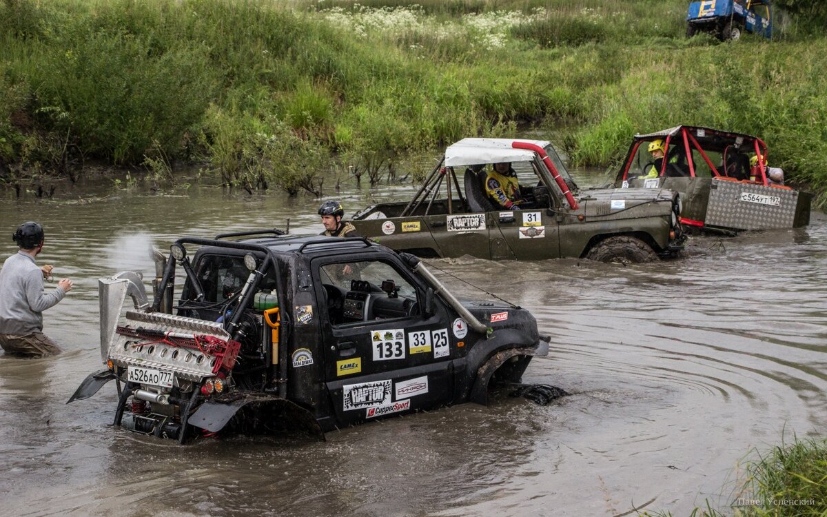 Операция по доставке «Нивы» к финишу требовала дополнительных сил. Перетащить ее через очередную грязь Rocky уже не мог - не хватало ни разгона, ни мощи. Общий совет в лице трех экипажей принял решение, что Daihastu перебирается «на другой берег» самостоятельно, УАЗ цепляется за него лебедкой и следует вслед за ним, после чего перетаскивает туда «Ниву, а после Daihatsu, при необходимости, эвакуирует из грязи УАЗ и дотаскивает до финиша «Ниву». Вот.