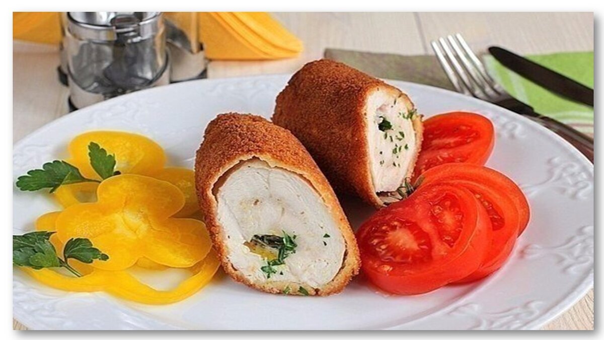 Ингредиенты для приготовления: ❦ филе (куриного)-берем четыре штуки ❦ соли и перчика (черного острого )-по вкусу ❦ зелени-берем один пучок ❦ куриных яиц-два штуки ❦ сухари панировочные-берем их для панировки ❦ масла растительного-добавляем 400 грамм ❦ масла сливочного-всего 100 грамм Приготовление вкусных котлет: 1)Петрушку моем и нарезаем ее. 2)Перемешиваем нарезанную петрушку и масло сливочное. 3)После этого,заворачиваем в пленку масло сливочное и кладем на 35 минут в морозилку. 4)Филе разрезать ножом так,чтобы оно получилось в форме прямоугольника и немного мясо отбить. 5)На краешек каждой отбитой филешки положить по небольшому кусочку мерзлого масла . 6)Нужно свернуть филе так,чтобы сливочное масло было изнутри. 7)Взбиваем яйца (немного) и смешиваем их с солью,обмакиваем котлетки в смесь куриных яиц. 8)После,нужно обвалять котлеты в сухарях. 9)Сделать так дважды. 10)Обжариваем котлетки с обеих сторон до полной готовности. Котлеты должны быть погружены в масле по