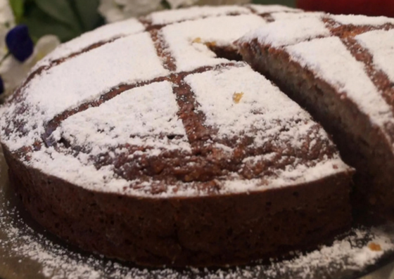 В смазанную маслом форму с пергаментом переливаем тесто. Немного потрясите форму, чтобы тесто равномерно распределилось. Форму ставим в разогретую духовку и готовим пирог при 200 градусах в течен