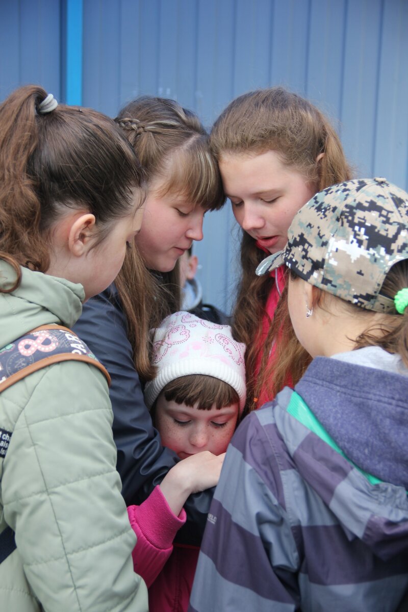 Наконец, едва вписавшись в сроки, мы отправились в музей под открытым небом Завод Соли, где проходил в этот день детский праздник, чтобы установить наш объект. Повесить колокольчики решили между двух почерневших от времени деревянных соляных ларей. Но фоне старого дерева нежные цветные колокольчики смотрелись очень нежно и радостно. После основной части зачета обычно у нас наступает время чаепития и безудержного веселья:) так как на Соль-заводе был праздник, то там звучала музыка, так что часть ребят сразу же организовали хоровод, крутящийся с бешеной скоростью, и захватывающий в свой круг, всех, до кого смогли дотянуться их руки. На этом фото руки еще не до всех дотянулись:) Но постепенно хоровод из больших и маленьких, из экстравертов и интровертов стал очень большим:) Получившийся объект стал на удивление яркой и приятной фотозоной, а также местом притяжения для малышей, приходивших позвенеть импровизированными колокольчиками Мы славно поработали, и славно отдохнули. Настроение