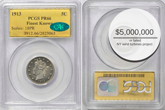 Rare nickel owned by Louis Elias will be auctioned in Philadelphia, where it can be sold for $3,000,000 - $5,000,000. This month Philadelphia will host the World Money Fair organized by the American Numismatic Association. The fair will be held in Pennsylvania from August 14 to 18. The most important lot will be the nickel named after financier Louis Elias who bought the coin in 1948 and gathered one of the greatest coin collections in the US history. The price of the coin is expected to reach $5,000,000. Collection of old American paper banknotes will be also auctioned and can raise up to $900,000. Comparisons time: The Daily Caller reported that New York wind turbines project launched several years ago failed — most of this turbines actually don’t work and need rapair. This project costed $5,000,000. Or one rare nickel. But it’s quite possible that this lot will bring you more pleasure and benefit. Source