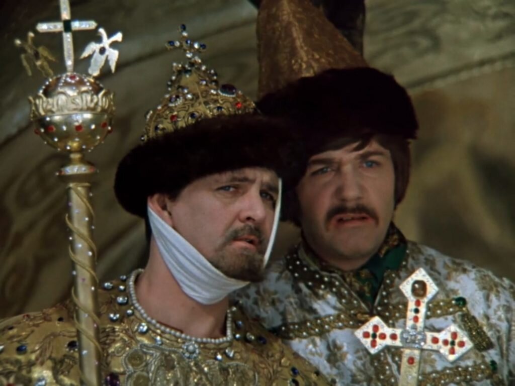 — Да как же тебя понять, кoли ты ничего не говоришь? Человек! Официант! Почки один раз царице! Эта роль ругательная, и я прошу её ко мне не применять! У всех трудящихся два выходных дня в неделю. Мы, цари, работаем без выходных. Ошибаетесь, уважаемый, это дело общественное. Вы своими разводами резко снижаете наши показатели. Тьфу на вас! ... Тьфу на вас ещё раз. А фамилия моя — фамилия моя слишком известная, чтобы я её называл! Казань брал, Астрахань брал, Ревель брал, Шпака — не брал. Я требую продолжения банкета! Нам, царям, за вредность молоко бесплатно надо давать! Очень приятно, царь! Оставь меня, старушка, я в печали…