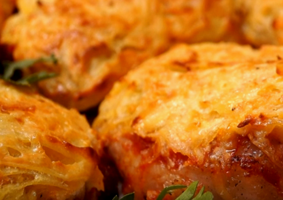 Готовим мясо под шубкой. Это рецепт приготовления нежного мяса с аппетитной хрустящей корочкой. Такое блюдо получается сытным и готовить его просто. И результат порадует и вас и ваших близких. Первым делом нарезаем на ломтики толщиной 1-1,5 см. Ложим каждый кусочек в пакет и слегка отбиваем кусочки, но не сильно. Насыпаем соль и перец по вкусу. Затем добавляем измельченный чеснок. Равномерно распределяем специи.