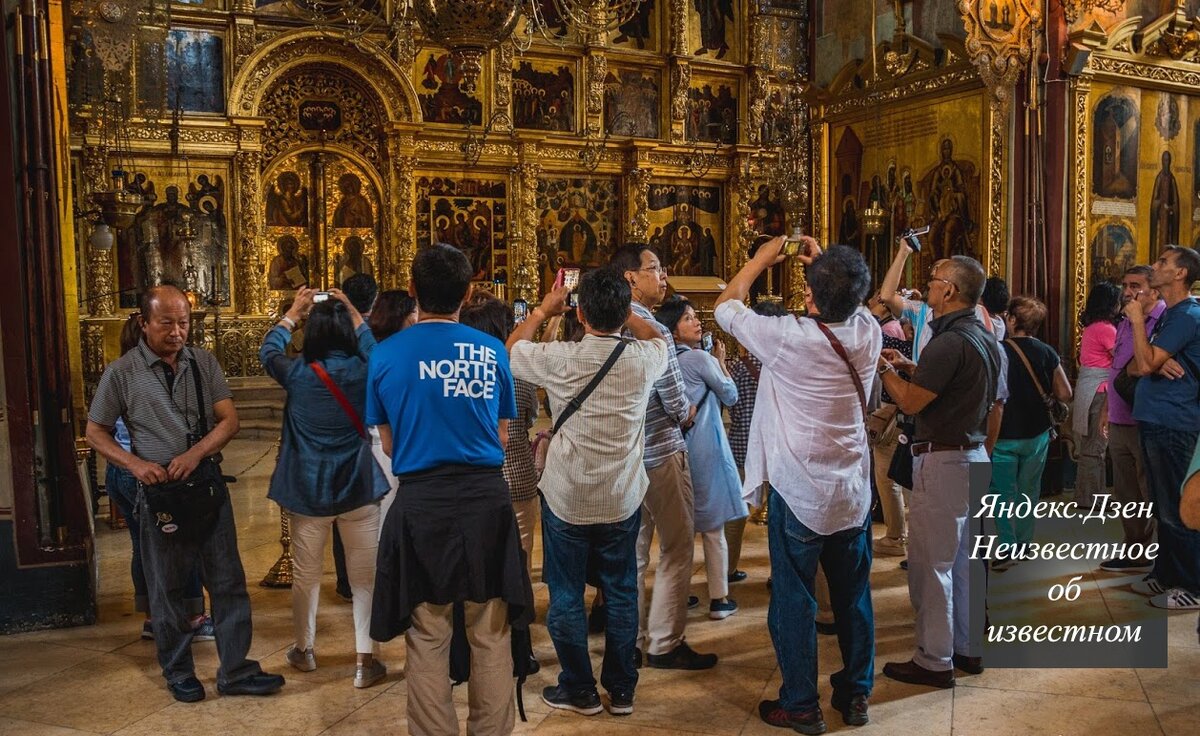 Азиатов можно встретить практически везде, где есть примечательные места. Россию они тоже стороной не обходят, а потому Золотое кольцо летом превращается в круговорот китайцев, корейцев, японцев и иже с ними. Но все-таки представителей Поднебесной больше. Одно из мест засилья - Троице-Сергиева Лавра, что в Сергиевом Посаде. Азиаты там прям вот всюду кишмя кишат, бесконечно фотографируют себя и окружающую действительность на телефон, снуют из храма в храм, выстраиваются в большую очередь за квасом, разлитие которого в стаканчики тоже бесконечно фотографируют. Нашенские бабульки в платках цокают языками, но деловито подмечают: "А как без этого? Современный мир таков, да и Лавре на что-то жить надо". Лавра, кстати живет на разные средства. В том числе и на "пожертвования". Посмотреть на что живет Лавра можно в церковной лавке, расположенной в колокольне. Очень впечатляют запонки за 10 тысяч рублей и часы за дорого, выставленные в витрине почему-то в сочетании с фотографиями Николая II