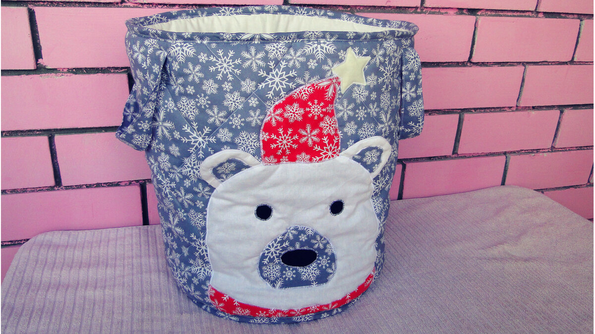 Размеры 40x35 см Для пошива корзины для игрушек, вам потребуется хлопчатобумажная ткань двух расцветок (для лицевой и изнаночной сторон корзины) и ткань для аппликации. Итак, корзина состоит из: Размеры деталей: Стенка - 111x41 см (уже с припусками); Дно - R 17,5 см или диаметром 35 см (уже с припусками); Ручки - 9x50 см (уже с припусками, в готовом виде 3,5x48 см); Косая бейка - 2 м 30 см (шириной 1 - 1,5 см); Холлофайбер - 111x41 см (стенка), R 17,5 см (дно); Аппликация. Припуски: Размеры стенки, дна и ручек указаны с учетом припусков. Порядок пошива Стенка. К основной ткани с изнаночной стороны прикладываем холлофайбер и скрепляем иголками со всех сторон. Прошиваем на расстоянии 2-3 мм от края со всех сторон. Обрезаем лишний холлофайбер. Делаем разметку для стежки: от краев отступаем 1 см, остальную часть делим на 8 (min 8, max 16). Чертим параллельно линии по диагонали. Простегать все линии. Отмерить место под аппликацию и пришить ее по центру. Сложить пополам лицевой стороной