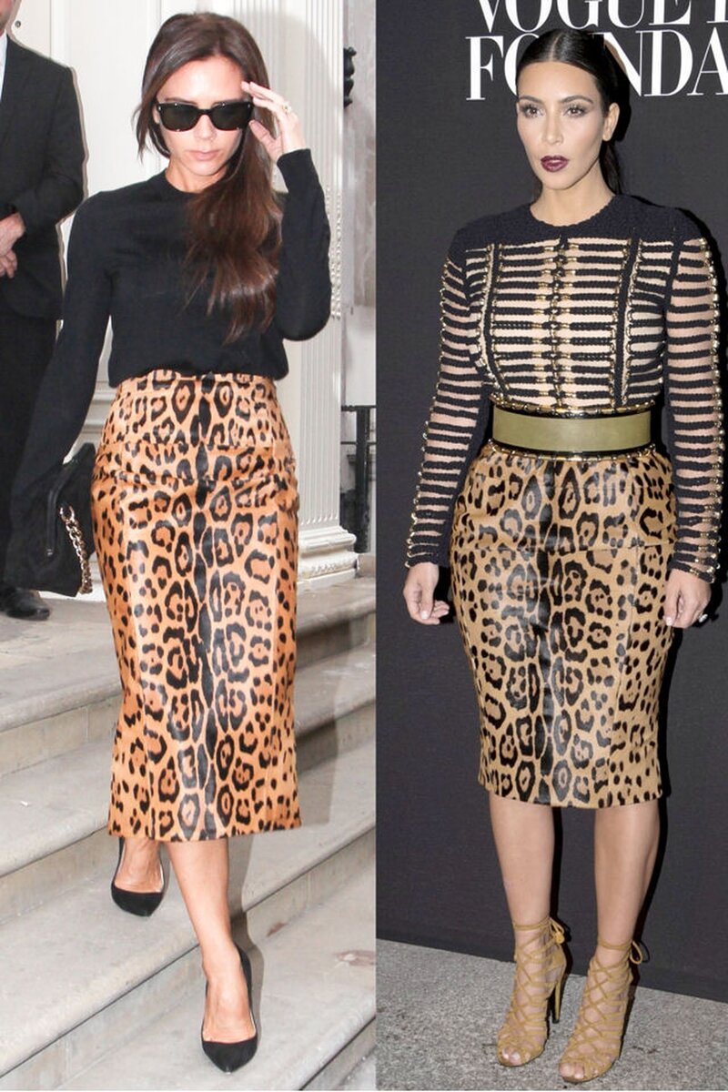 Виктория Бекхэм и Ким Кардашян. Леопардовый принт стал основой образа Виктории Бекхэм и Ким Кардашян. Виктория остается верной своему стилю и сочетает юбку с черным топом, лодочками и аксессуарами в цвет. Ким напротив, смешивает принт с горизонтальными линиями , плетеными сандалиями и зеленым поясом. Даша Поланко и Даниэла ди Джакомо Две красавицы устроили настоящую модную битву, надев на одно мероприятие одинаковые белые бандажные платья от британского бренда House of CB . Кто победил сказать сложно, потому что красивая грудь Даши была не менее эффектна стройных бедер Даниэлы. Бейонсе и Джордан Данн Две девушки выбрали одинаковое леопардовое платье-халат. В данном случае Бейонсе выглядит наиболее эффектно: платье подчеркивает аппетитные формы , а прическа и аксессуары делают образ завершенным. Серена Уильямс и Джиджи Хадид Девушки являются давними подругами, но при этом платье от Версаче сидит на них абсолютно по разному. Оба образа создают координально противоположны