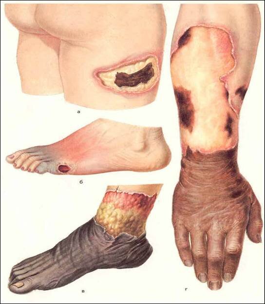 Начальные симптомы гангрены:
