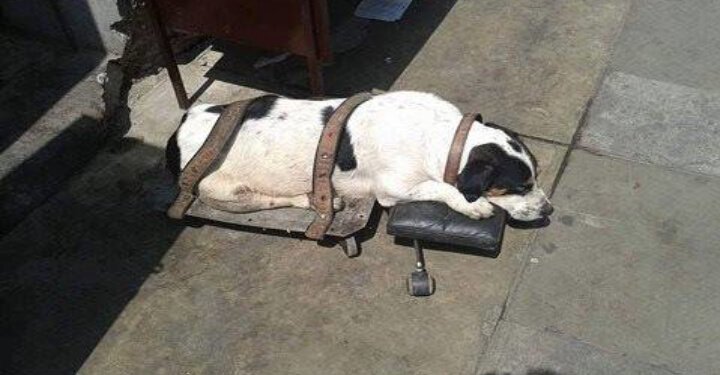 Есть только одна фотография Кабезончито, перуанской уличной собаки, сделанная до его спасения. На фото песик привязан к маленькой металлической тележке на станции метро в Лиме, Перу. Ремни крепко обтягивают тело собаки; и похоже, что она не может двигаться. Поэтому она просто лежит там, с опущенной головой. ...Хотя мало известно о том, как Кабезочито оказался на этой станции, Сара Моран, основатель небольшого приюта для собака-инвалидов Milagros Perrunos, считает, что его владелец связал его и оставил там, после того как пес ранил задние ноги. «Кабезончито, очевидно, пострадал от несчастного случая» - сказала Моран Додо. Когда компания молодых людей увидела эту уличную собаку четыре года назад, они отвязали его от тележки и накормили. Они подумали, что после этого с собакой будет все в порядке. Но когда они вернулись на это место две недели спустя, то обнаружили, что Кабезончито снова привязан в том же месте. Видимо, бедная собака из последних сил доковыляла до своего прежнего хоз