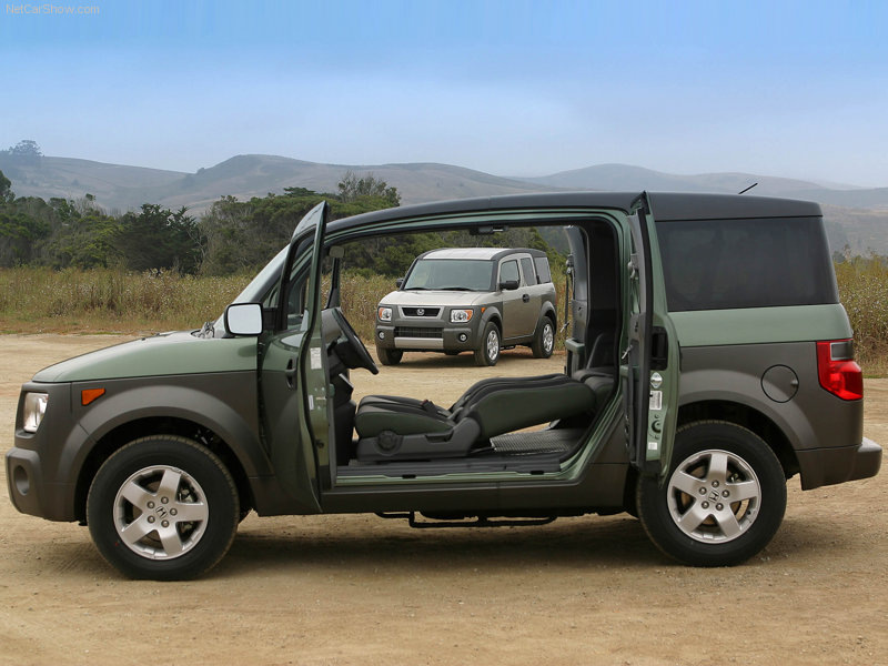 10. Honda Element ≈ 490 000 — 700 000 ₽ Построен на изрядно перекроенной базе CR-V. Салон-трансформер, отсутсвие средней стойки, сиденья с водоустойчивым покрытием, пол и багажник с полиуретановым покрытием, большой люк — все это позволит ни в чем себя не ограничивать.