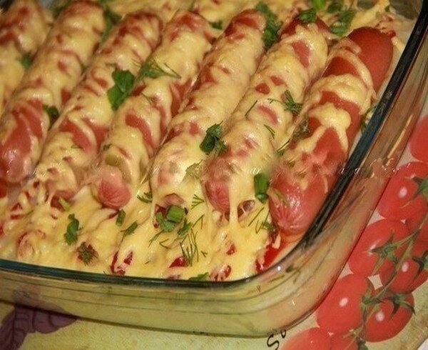 Запеканка с сосисками-это очень вкусно! Быстро, легко! Очень всем нравится. Любимое блюдо моих внуков. Едят так, что за ушами трещит. Попробуйте приготовить-ваша семья будет счастлива! ИНГРЕДИЕНТЫ 500 гр. картофельного пюре 1 яйцо 4 сосиски томатная паста 100 гр. твёрдого сыра зелень ПРИГОТОВЛЕНИЕ Картофельное пюре смешайте с яйцом и выложите в смазанную маслом форму для запекания или на противень. Верх пюре смажьте качественной томатной пастой. На пасту выложите сосиски. Сверху посыпьте тёртым сыром. Запекать в духовке, разогретой до 180 градусов минут 15. Готово! При подаче к столу посыпьте мелко нарезанной зеленью. ПРИЯТНОГО АППЕТИТА!