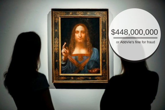 Comparisons time: In Jule court rules biopharmaceutical company AbbVie to pay $448,000,000 for blocking consumer access to lower-cost generic versions of testosterone gel. This act of fraud may be similar in terms of the amount of damage to the auction of a painting that was not created by Leonardo da Vinci.