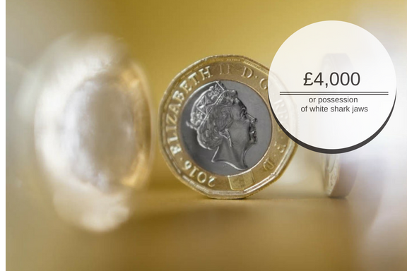 Comparisons time: Recently a Meadow Springs man has been fined $5,100 for possession of great white shark jaws in his home. He could pay the fine with just one £2 coin.