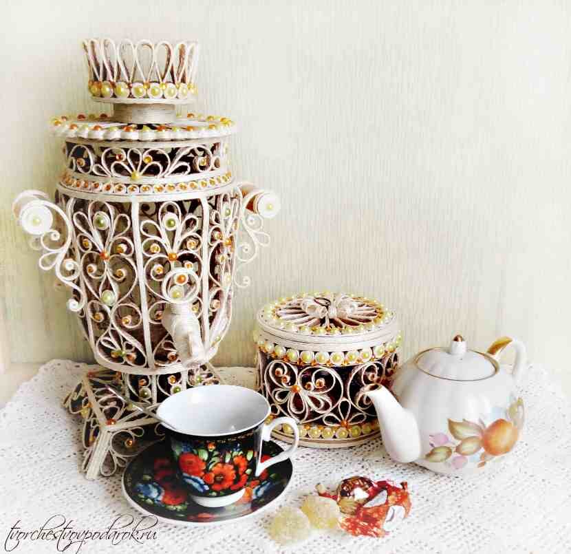 Здравствуйте, дорогие друзья! Встречайте – русский самовар своими руками готов для вдохновенного чаепития! Чаепитие за самоваром – самая яркая черта русского традиционного быта. Он был не просто обычным предметом повседневного хозяйства, а являлся своеобразным олицетворением достатка, семейного благополучия и домашнего уюта. Изначально позволить себе иметь его могли только состоятельные люди и приобретение его считалось значительным событием. Русский самовар бережно хранили, был частью приданого, его передавали по наследству, дарили. Начищенный до блеска, он красовался на самом почетном и видном месте в доме. Он был гордостью семьи. Часто в семье было два самовара – один для повседневного использования, а второй, как правило, более красивый и вместительный, для праздничного чаепития. Самовары изготавливались самой разнообразной формы. и каждый фасон имел свое название: “шар”, “яйцо”, “ваза”, “репка” и т.д. Размеры тоже варьировали от самых маленьких до гигантских. Например, в само