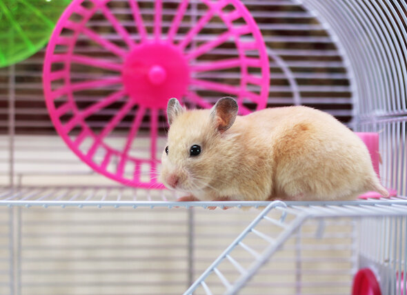 Игрушки в клетку. Обязательно колесо-барабан, в котором ваши хомячки будут с удовольствием вертеться и занимать их в ночное время (хомячки поддерживают ночной образ жизни). Можно положить пластиковые шарики.