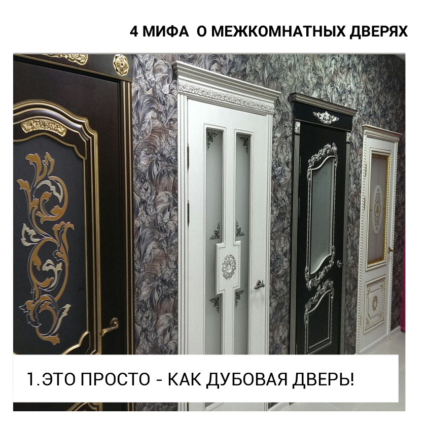 4 основных мифа, с которыми Мы сталкиваемся при выборе межкомнатной двери. Что казалось бы проще? Дверь! Вот она стоит и прикрывает дырку в стене. Конечно, именно так и было в древние-древние времена. Только вместо доски был камень, чем не дверь! Отличная- на века!!! А теперь давайте рассмотрим современные высокотехнологичные двери, с лепными деталями, вензелями, узорами и с ударопрочным стеклом. Или же целиком стеклянные. Для того чтобы Вы получили понравившуюся Вам модель двери на производстве соблюдается сложный технологический процесс, где либо конвейер, либо множество людей, машин и станковудятся над созданием Вашей двери. Ещё один р
