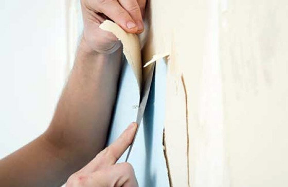 5. Отрывать обои лучше со шва, для этого используют острый шпатель.