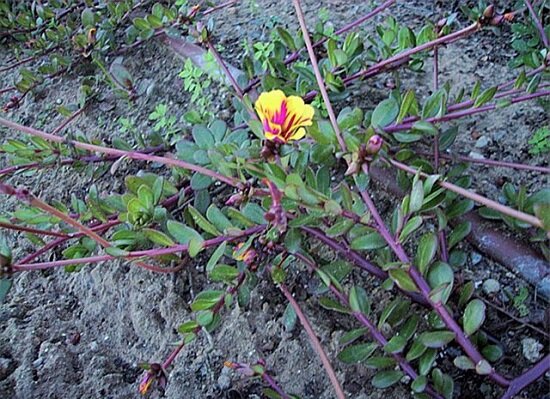 Вот так он может выглядеть под вашим ногами: Стелющееся красноватые ветвистые стебли с мясистыми сочными продолговатым листьями. А ведь некоторые садоводы его высаживают и культивируют. Знайте его полезные свойства и не проходите мимо. Ведь именно в июле-августе он цветёт. В основном - в южных регионах России, Украины и не только. Каждая часть этого растения съедобна - цветы, листья, стебли и даже семена. Из-за слегка соленого и пряного вкуса добавление в салат придаст ему пикантный вкус. Портулак – это ценнейший источник белка, без которого функционирование человеческого организма невозм