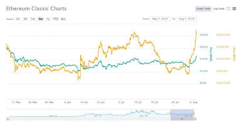 ЦЕНА ETHEREUM CLASSIC ПРИБЛИЗИЛАСЬ К ТРЕХМЕСЯЧНОМУ МАКСИМУМУ