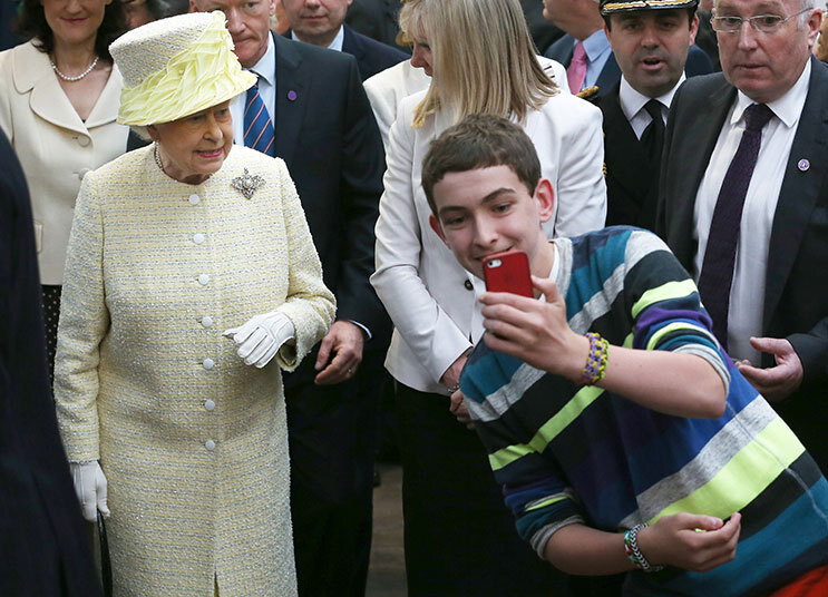 Эти снимки доказывают, что современные монархи обладают чувством юмора и не против оказаться на чужих селфи. Смелый парень решился сделать снимок с самой королевой. Фото с принцем Гарри. Ну, как уж получилось. И потрясающий кадр с Уильямом. Этой девушке повезло больше. Меган Маркл остановилась, чтобы попасть в кадр поклонника. Бегун фотографируется с Кейт Миддлтон и принцами Уильямом и Гарри.