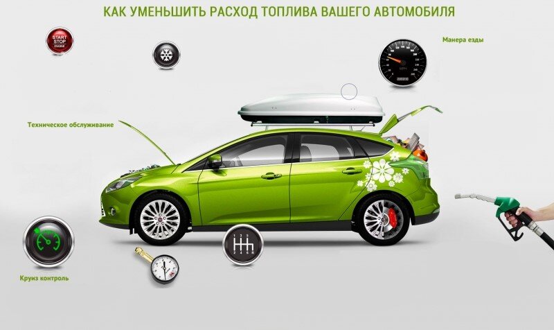 В связи с постоянным увеличением цены топлива по всему миру содержание и использование личного транспорта становится всё более дорогим удовольствием. Чтобы предотвратить повышенный расход топлива в автомобиле, существует некоторое количество главных и относительно лёгких правил. 1. Необходимо постоянно обследовать техническое состояние личного транспорта. При использовании правильно работающего, но правильно не отрегулированного транспорта, повышенный расход топлива в автомобиле составит 10%. 2. Требуется регулярно проверять давление в шинах. При его изменении с 2,0 кг/см2 до 1,5 кг/см2 непременно происходит рост потребляемого топлива на приблизительно 3 процента. Все необходимые измерения проводятся строго в прохладном состоянии, так как при небольшом пробеге давление внутри шин может повысится. 3. Постоянно производить настройку развал-схождения личного транспорта. 4. Следует знать, что за каждые 50 кг багажа скорость расхода топлива увеличивается приблизительно на 2-5%. 5. Повышенны
