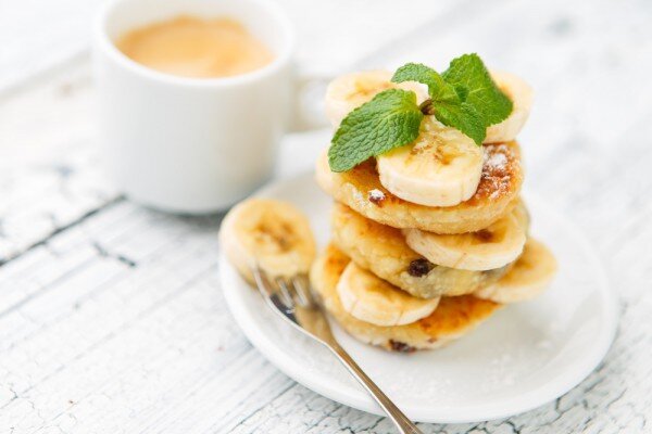 Ингридиенты: Способ приготовления 1. Изюм предварительно распарить, залив его кипятком на 10 минут. Смешать творог с яйцами, сахаром, солью. Добавить ванильный сахар и отжатый от воды изюм. Все хорошо перемешать. 2. Сковороду с растительным маслом разогреть. Огонь на плите убавить до среднего. Сформировать из творога небольшие шарики, обвалять в муке, приплюснуть, лишнюю муку струсить. 3. Обжарить сырники с двух сторон, аккуратно переворачивая их лопаткой, до румяного цвета. Подавайте сырники горячие со сметаной, вареньем, медом, сгущенкой – дело вкуса. Автор: nikol_boteva