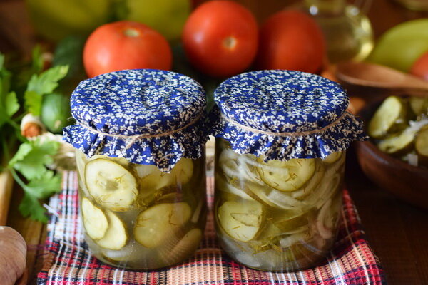 Отличный проверенный рецепт домашней консервации мы готовы предложить вам немедленно. Вкуснейший салатик из огурцов и лука отлично пойдет к любому мясному блюду, прекрасно сочетается с вареным (жареным, печеным) картофелем, замечательно оттенит любой рыбный деликатес. Огурцы можно брать абсолютно любого размера. Из указанных ниже ингредиентов у нас получилось 1 ½ литра готового продукта. Поллитровые баночки (3 штуки) мы заранее стерилизуем паром (6-7 минут каждую), крышки прокипятим. Чтобы приготовить салат Зимний король из огурцов на зиму потребуется: Готовим салат Зимний король из огурцов на зиму (стерилизация не требуется): В проточной воде тщательно помоем огурцы. Зальем их холодной водой на 2-3 часа. Лук почистим. Сполоснем укроп. Подготовленные огурцы нарежем тонкими кружочками. Каждую луковицу нашинкуем удобным способом. Мы порезали лук полукольцами. В удобную миску выложим огуречные кружочки, луковые полукольца, мелко нашинкованный укроп. Перемешаем деревянной ложкой. Пригото
