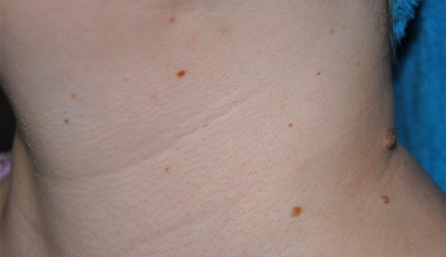 Папилломы на шее выглядят неэстетично, причиняют дискомфорт, а после случайного повреждения могут стать источником инфицирования. Появление папиллом на теле сигнализирует о наличии в организме ВПЧ. Это коварная инфекция, в течение многих лет может находиться в организме, никак себя не проявляя. Но как только происходит ослабление иммунитета или возникает гормональный сбой, вирус активизируется. На шее чаще появляются плоские или нитевидные (на ножке) образования. Иногда они могут самостоятельно подсыхать и исчезать, иногда — напротив, увеличиваться в размерах и разрастаться. Для удаления папиллом применяют различные методы (в зависимости от их количества, локализации, состояния организма). Перед тем, как приступить к удалению в домашних условиях, необходимо пройти обследование и убедиться, что новообразования не злокачественные. Существуют медикаментозные препараты (Криофарма, Ферезол, Веррукацид и др.) на основе кислот или щелочей, которые разрушают ткани новообразований. Такие средст